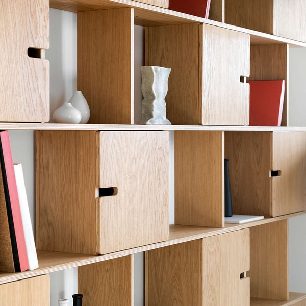 Espaço Interno: Modelo estante com prateleiras ajustáveis e sistema de arrumação coberto por porta batente