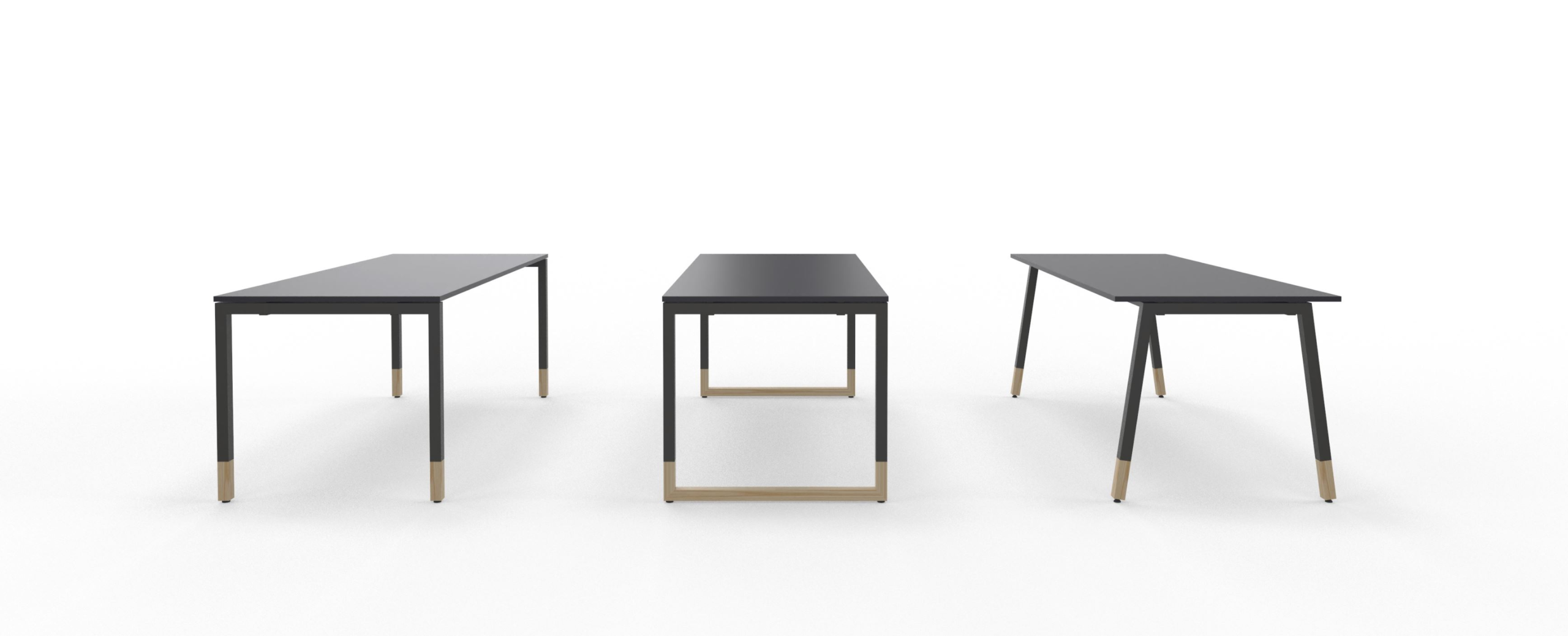 Perna em tubo metálico com secção quadrada 30x30x2mm espessura; Perna em formato aberto “N”, fechado “O” e aberto com inclinação “A”;